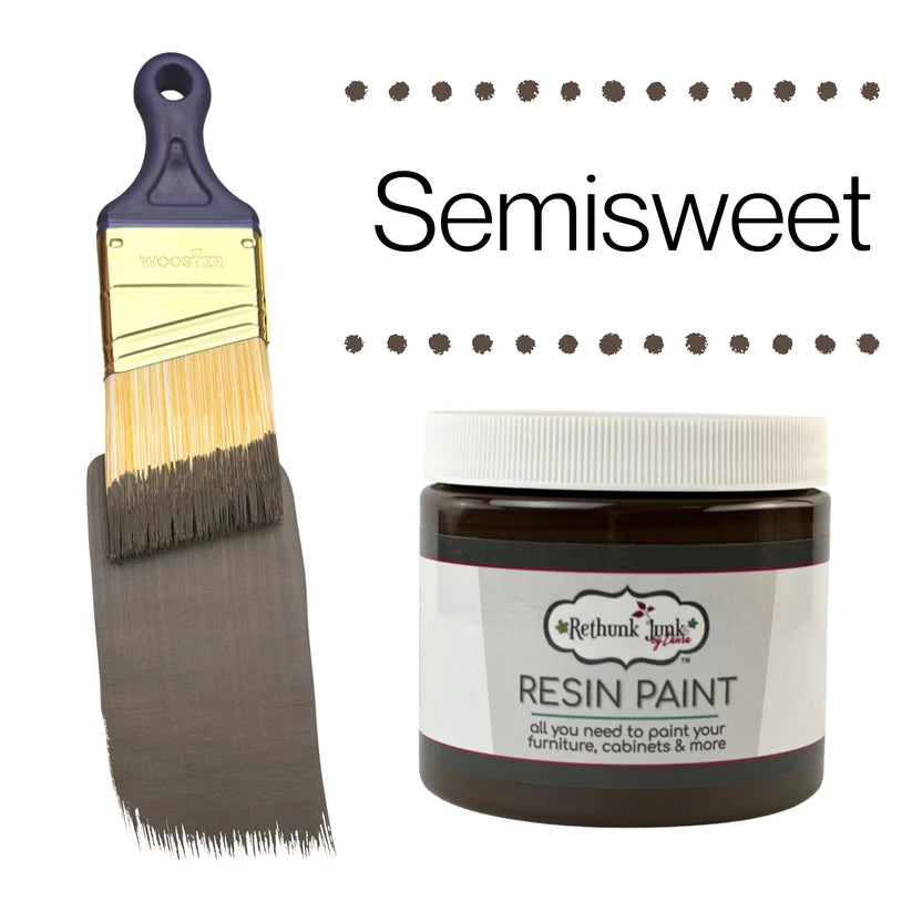 Semisweet is a true, deep brown. No purple or black undertones here - just a rich, classic brown that's reminiscent of dark chocolate. We love using Semisweet as part of a blended farmhouse-style finish on table tops.