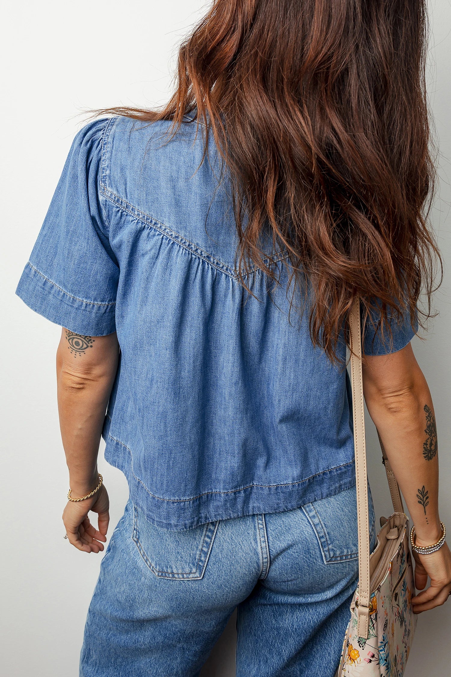 Short sleeve denim top keeps you cool and stylish in warm weather.