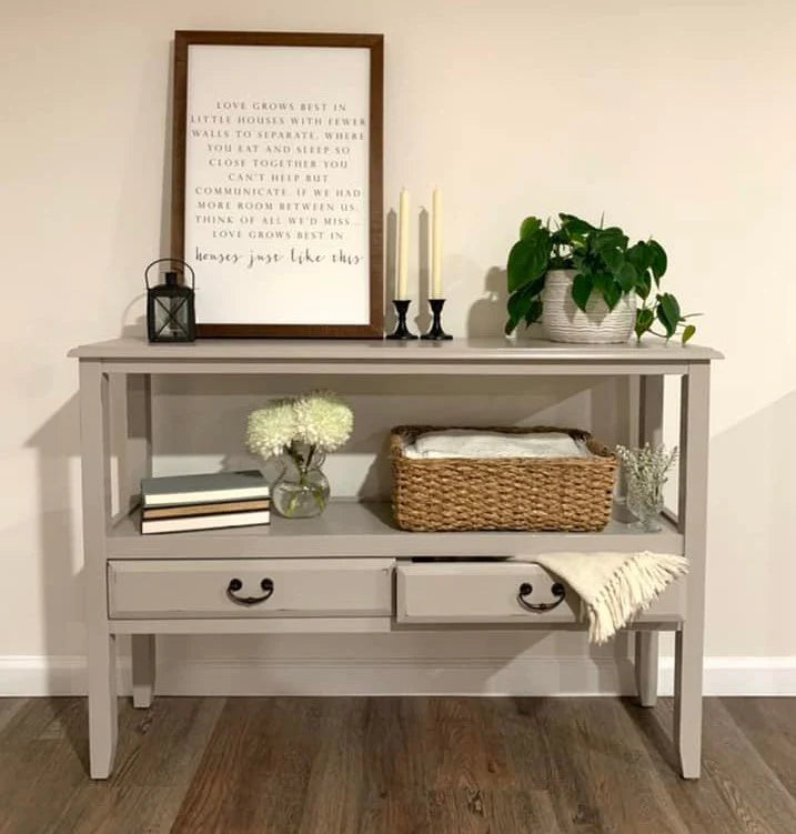 Gray Mist is a warm greige with both gray and beige tones. Its warmth creates a cozy vibe in both cool and warm rooms and pairs well with Cotton and Dark Walnut Stain Top for two-tone projects. (looks gorgeous paired with Cotton – one of my favorites!), Slate
